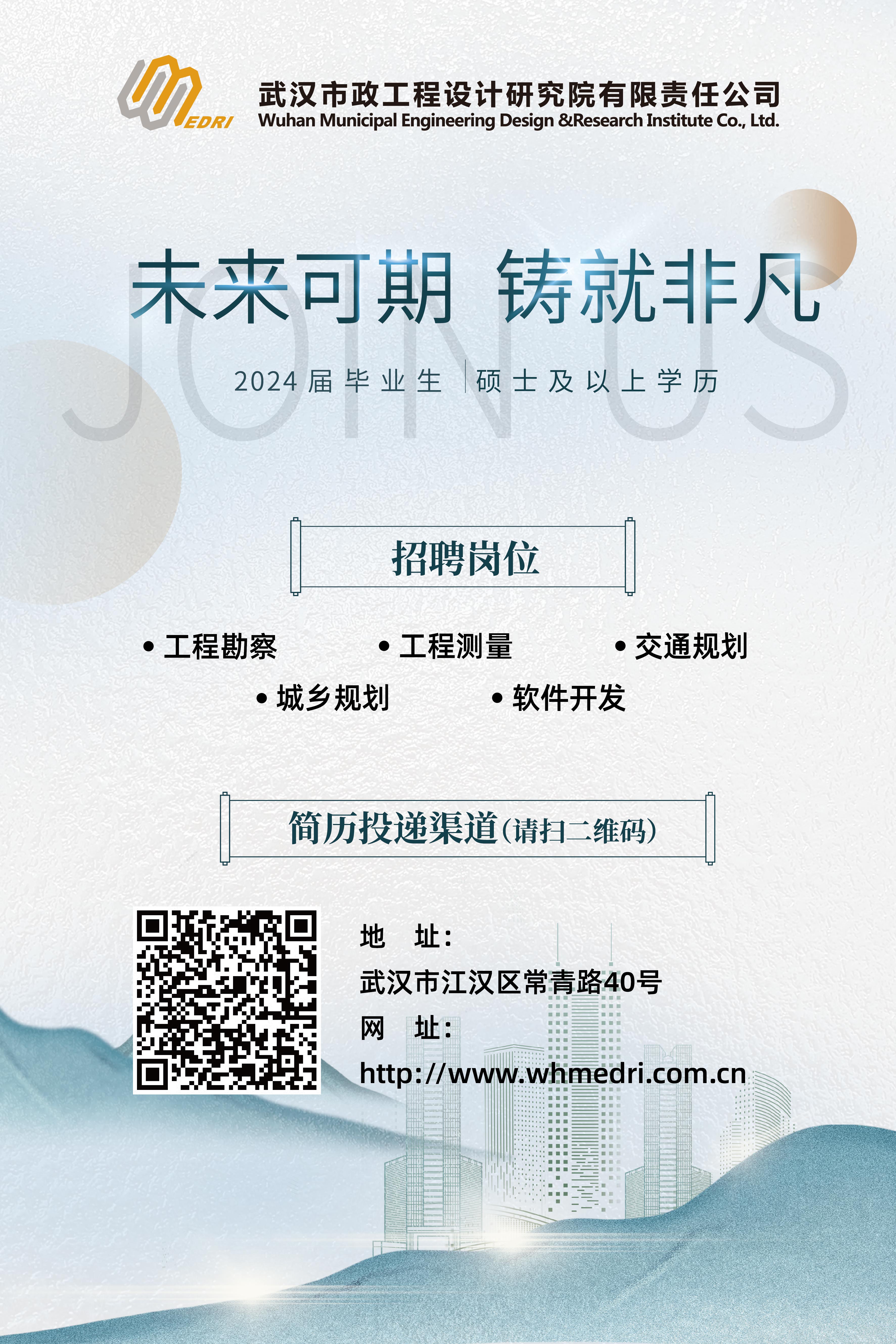 未來可期 鑄就非凡 武漢市政設計院2024屆校園招聘