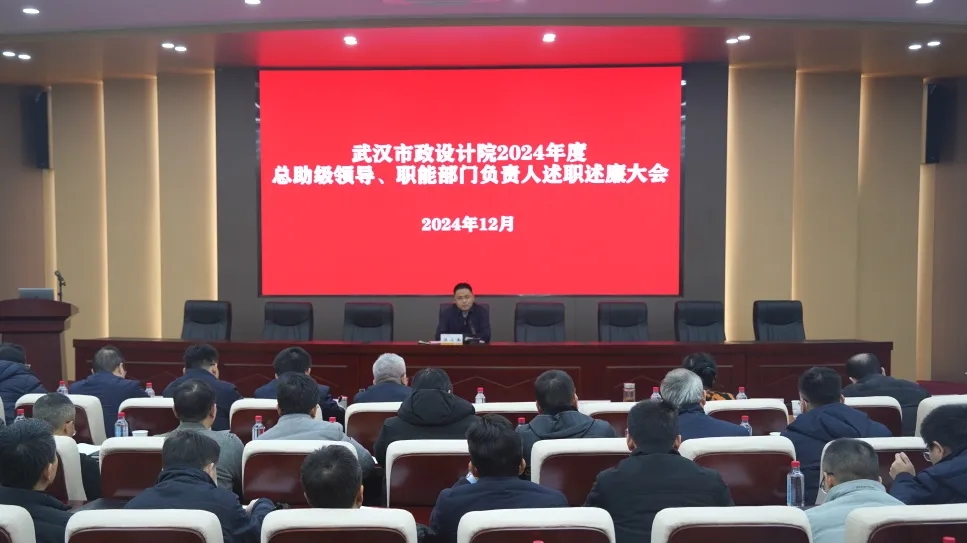 ? ? 12月24日下午,武漢市政院組織召開了2024年度總院中層干部述職述廉暨民主測評大會。公司領(lǐng)導班子成員、各部門(單位)負責人、職能部門全體員工共計70余人參加會議。市城投集團公司副總經(jīng)理,武漢市政院黨委書記、董事長汪小南出席會議并講話。