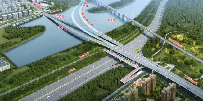 ? ? 根據(jù)項目邊界條件,橋梁工程采用差異化設(shè)計方案,針對不同路段特點進行精細化設(shè)計:跨黃潭湖深水區(qū)域段上部結(jié)構(gòu)采用預(yù)制鋼混組合梁,下部結(jié)構(gòu)采用高樁承臺配合吊箱圍堰施工,顯著提升施工效率;跨三環(huán)線采用86.6米大跨徑簡支鋼箱梁,跨徑位居國內(nèi)同類橋梁前列,并配套采用鋼-UHPC輕型組合橋面體系,有效提升結(jié)構(gòu)耐久性;陸地段選用預(yù)應(yīng)力混凝土結(jié)構(gòu),大幅降低建設(shè)成本。