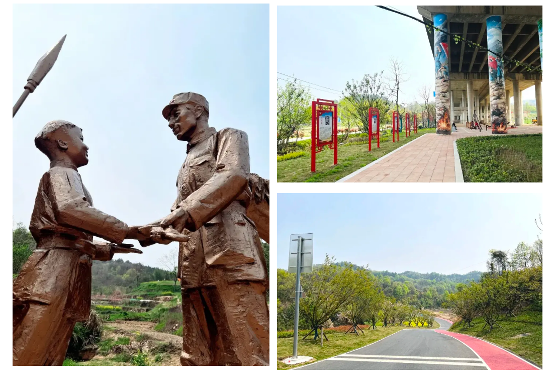 ? ?“十里紅道”項目以紅色文化為核心,創(chuàng)新融合鄉(xiāng)村振興與生態(tài)發(fā)展理念,打造出一條串聯(lián)歷史、自然與產(chǎn)業(yè)的振興紐帶。項目以鄂南革命根據(jù)地的紅色基因為靈魂,通過“兩路六道三片多節(jié)點”的規(guī)劃,將沙窩、寶團等六村的抗日舊址、革命紀念碑等紅色遺跡與山水田園有機串聯(lián),形成20公里的文化長廊。