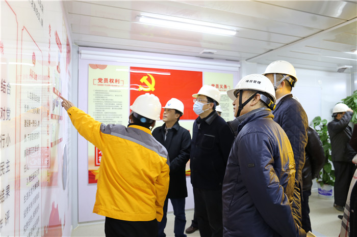 吳文一行抵達(dá)項(xiàng)目現(xiàn)場(chǎng)后,實(shí)地考察了沙湖港北路停車場(chǎng)項(xiàng)目聯(lián)合黨支部建設(shè)情況,了解聯(lián)合黨支部組織架構(gòu)和活動(dòng)開展情況。在隨后召開的調(diào)研座談會(huì)上,公司項(xiàng)目管理中心匯報(bào)了項(xiàng)目建設(shè)及推進(jìn)情況,吳偉文匯報(bào)了聯(lián)合黨支部黨建工作開展情況。