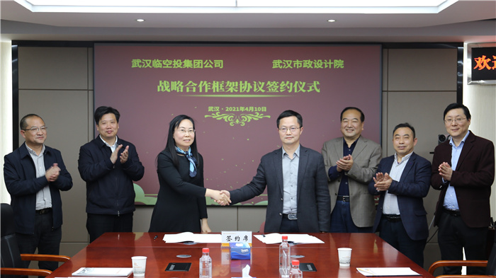 2021年4月10日,武漢市政設(shè)計(jì)院與武漢臨空經(jīng)濟(jì)區(qū)建設(shè)投資開發(fā)集團(tuán)有限公司在漢簽署戰(zhàn)略合作協(xié)議,雙方將依托各自的技術(shù)、資源等優(yōu)勢(shì),在臨空經(jīng)濟(jì)區(qū)內(nèi)的市政項(xiàng)目整體策劃研究、環(huán)境治理等方面開展深度合作。武漢市政設(shè)計(jì)院董事長(zhǎng)武興治、總經(jīng)理姚華、紀(jì)委書記談逢陽、副總經(jīng)理陳建斌,武漢臨空投集團(tuán)公司黨委書記、總經(jīng)理黃峰,副總經(jīng)理朱年正,副總工程師王瑩,以及雙方相關(guān)人員出席簽約儀式。