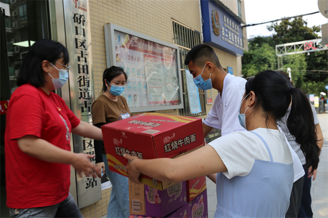 疫情無情人有情。2021年8月6日下午,公司黨委副書記、紀(jì)委書記談逢陽代表公司向?qū)谙鲁恋墓哦鐓^(qū)捐贈(zèng)了防疫物資以及生活用品,并詳細(xì)詢問了社區(qū)防控需求情況