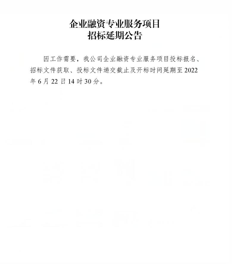 企業(yè)融資專(zhuān)業(yè)服務(wù)項(xiàng)目招標(biāo)延期公告