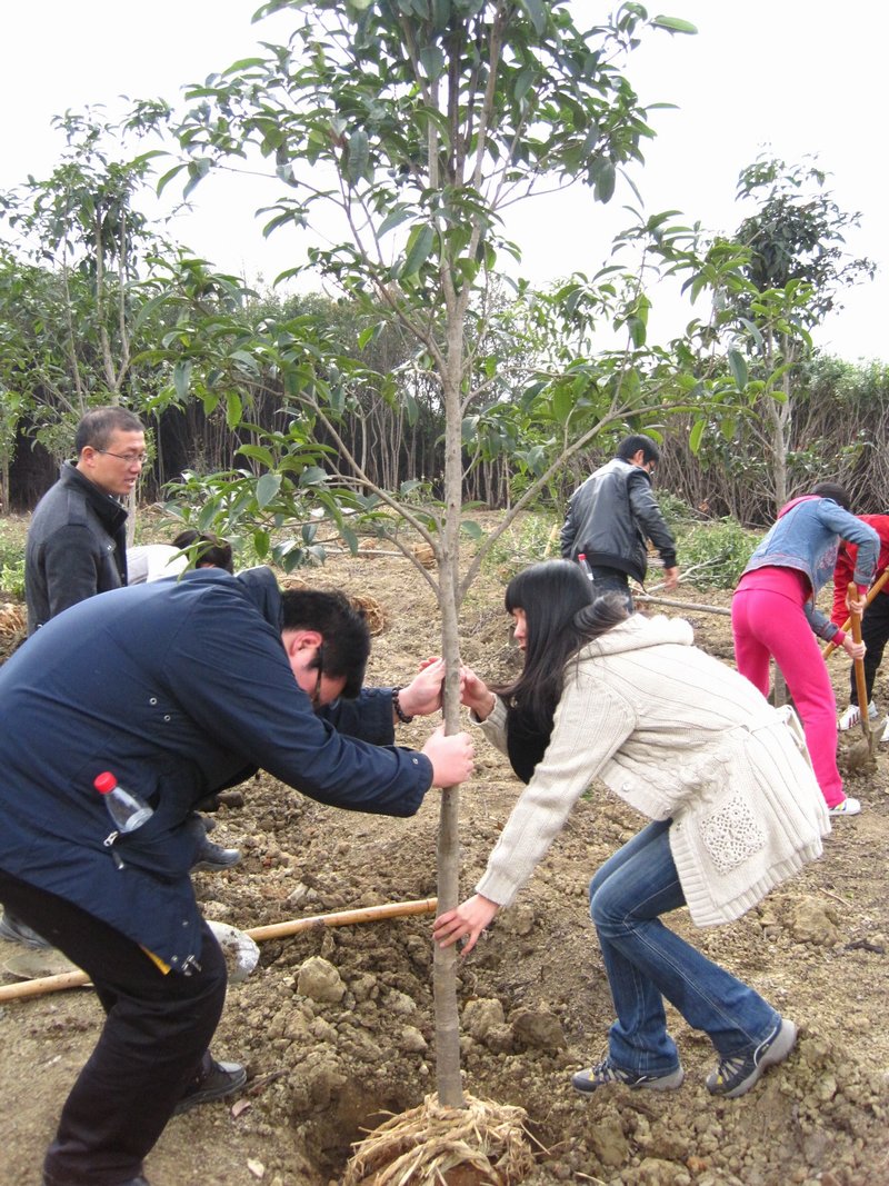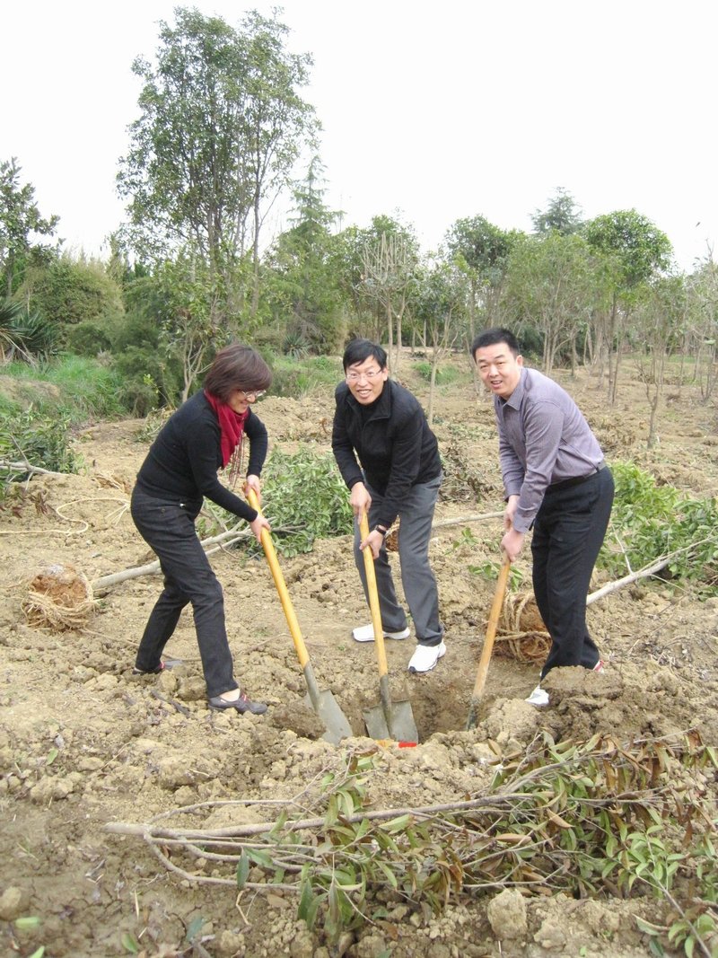 參觀結束后,員工們來到植樹基地,在工作人員的指導下開始植樹。蔡書記和趙副總經理率先垂范,親手種下了幾株樹苗。領導帶頭,員工們自然也不甘人后,大家熱情高漲,你挖我栽,互相配合,不一會,50余棵樹苗已經栽種完畢。大家親手制作了信息牌,寫上部門和自己的名字,并舉起相機,在自己的“勞動成果”前合影,見證這次有意義的植樹活動。