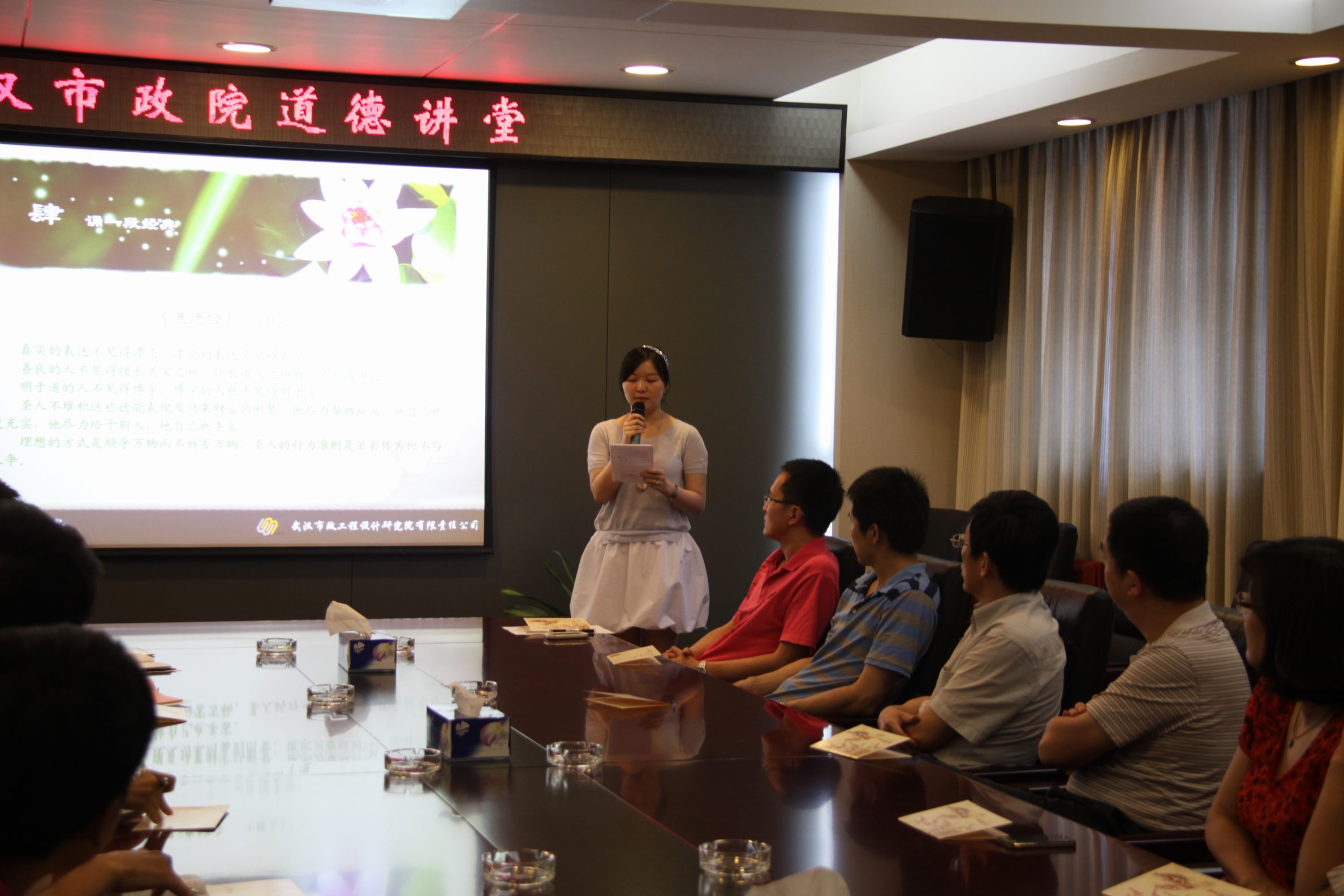??? 6月14日下午,公司在三樓會(huì)議室舉行了“道德講堂”教育活動(dòng),共有包括青年員工代表、業(yè)務(wù)骨干在內(nèi)的30余人參加了本次活動(dòng),公司相關(guān)領(lǐng)導(dǎo)出席了活動(dòng)。