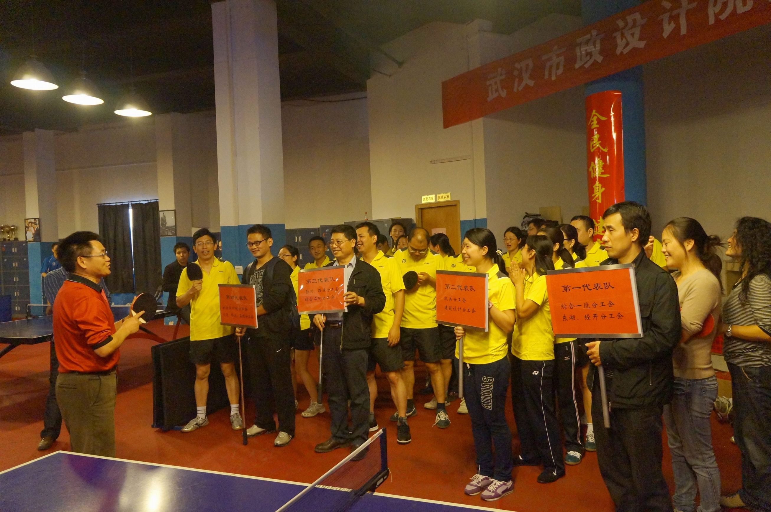 ??? 11月9日,武漢市政院舉行了乒乓球團(tuán)體比賽,在江城漸涼的秋日中點(diǎn)燃了運(yùn)動(dòng)的熱情??虏憾麻L(zhǎng)致辭并宣布比賽開(kāi)始。