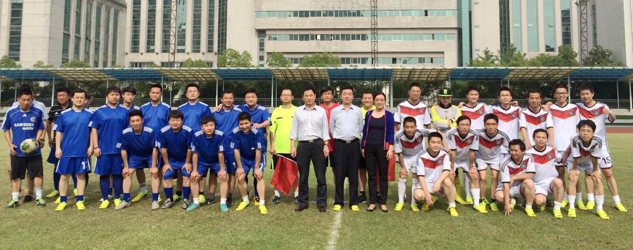 ??? 5月7日下午,位于北湖的漢口體育中心內(nèi)人聲鼎沸,活力四射,公司“慶五四”足球友誼賽在這里舉行。公司黨委書(shū)記蔡輝、副總經(jīng)理張偉及各分工會(huì)主席、部門負(fù)責(zé)人到現(xiàn)場(chǎng)觀看了比賽。