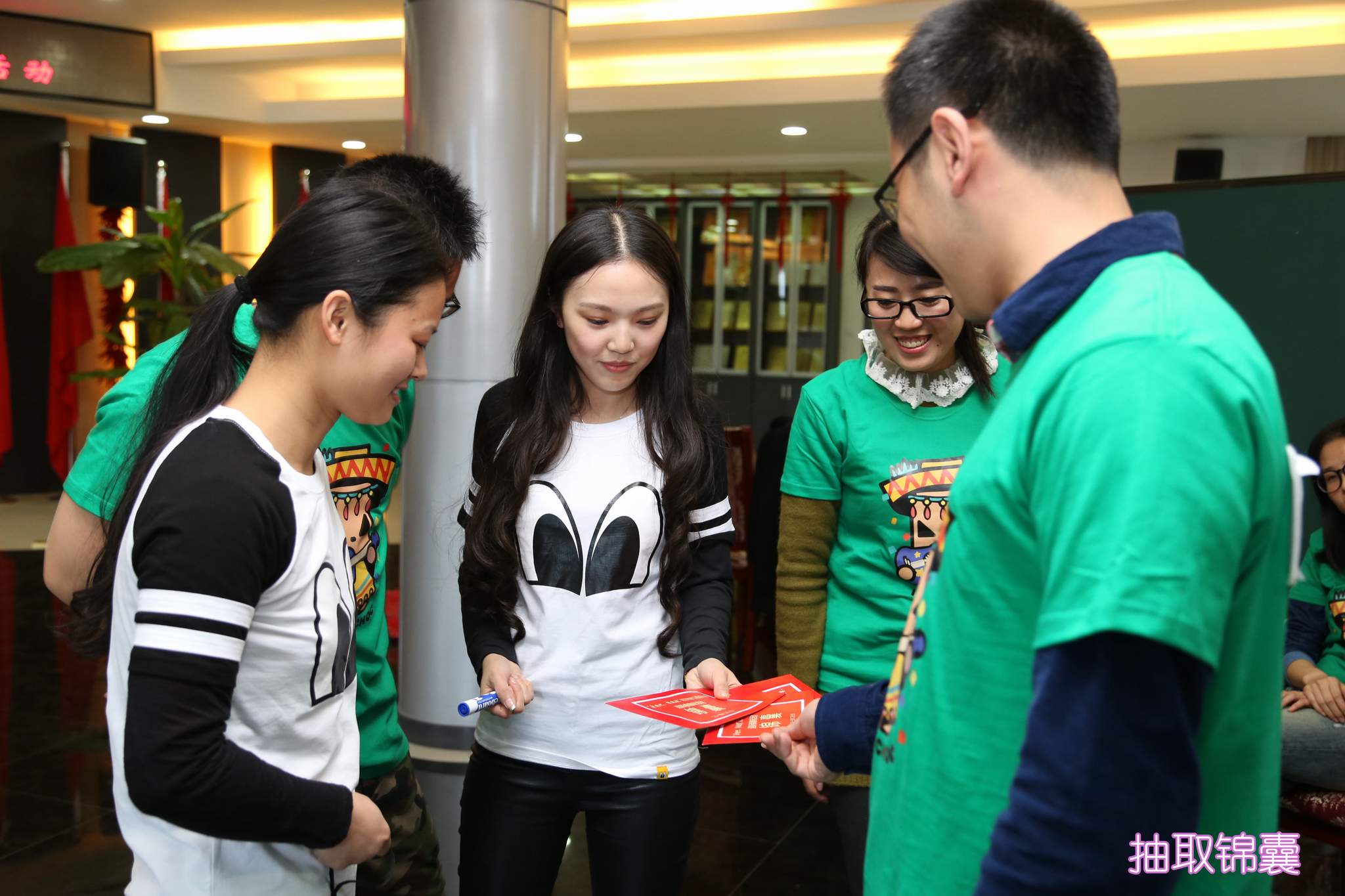 ??? 本次活動由公司工會、團(tuán)總支策劃并組織,公司黨委書記蔡輝、副總經(jīng)理趙世杰、總經(jīng)理助理胡軍,以及各分工會主席來到活動現(xiàn)場,為參加活動的選手們加油助威。來自公司不同部門的21名員工通過抽簽被分成了紅、黃、綠三個小組,在主持人的指揮下,他們首先前往指定的辦公室,尋找第一環(huán)節(jié)的重要道具——答題板,最終,綠隊最先找到了兩個答題板,在第二環(huán)節(jié)的競賽中占據(jù)了先機(jī)。