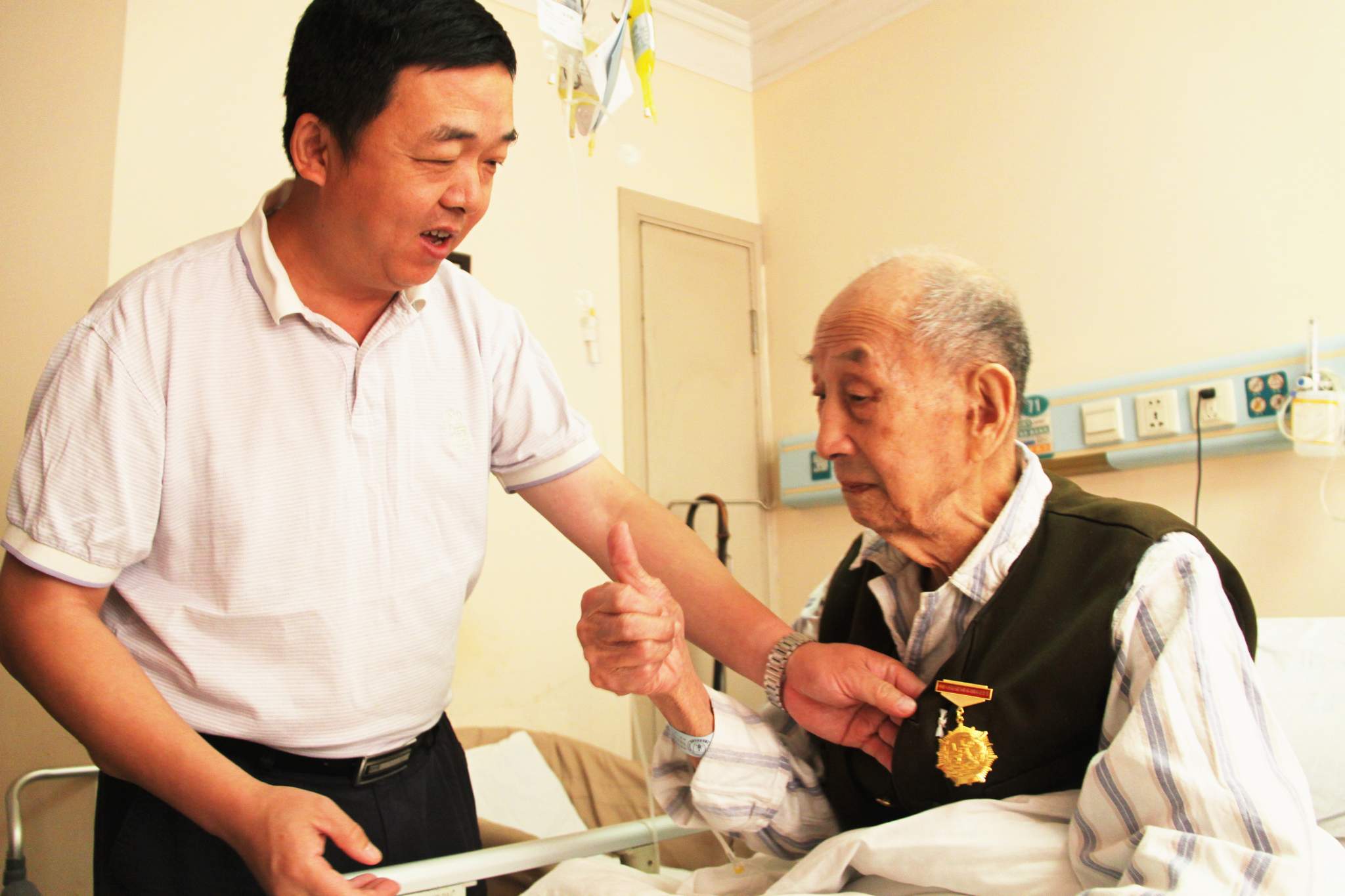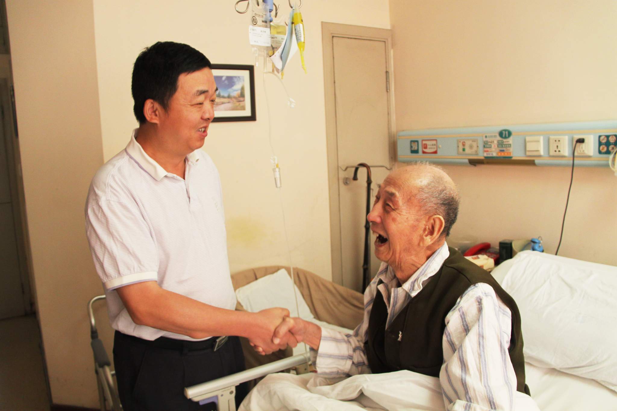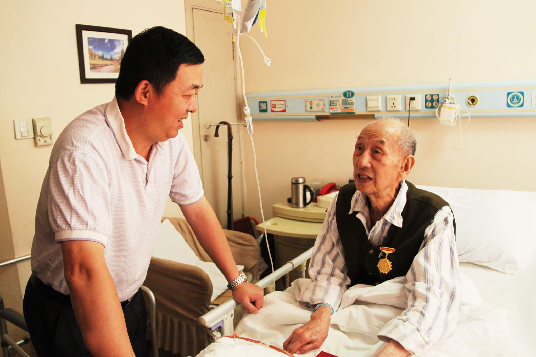 ??? 今年是中國人民抗日戰(zhàn)爭勝利七十周年,為了緬懷歷史,表達(dá)對革命前輩的敬仰之情,8月28日上午,公司黨委書記蔡輝等一行前往協(xié)和醫(yī)院,慰問公司抗戰(zhàn)離休老干部陳貴德同志。