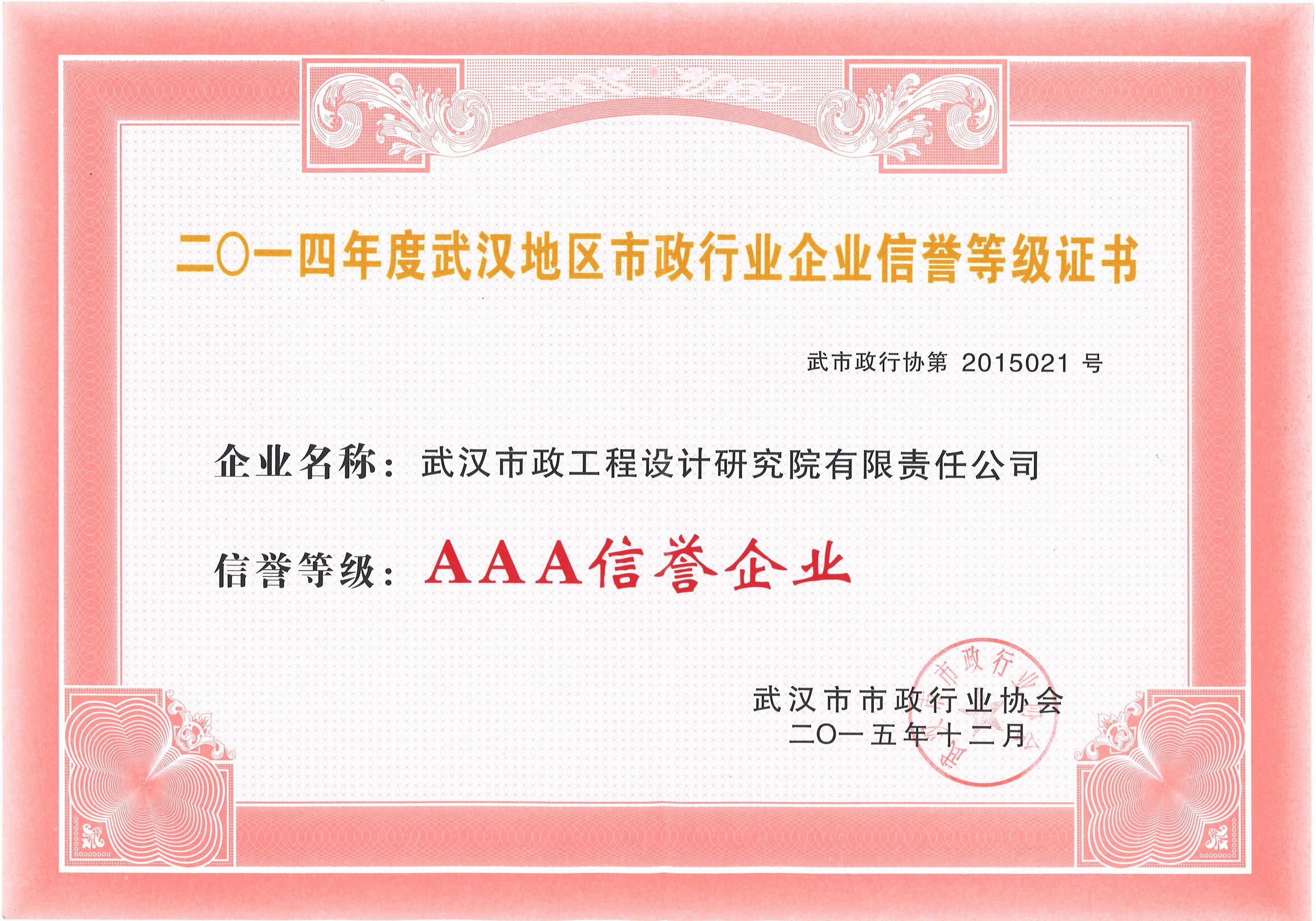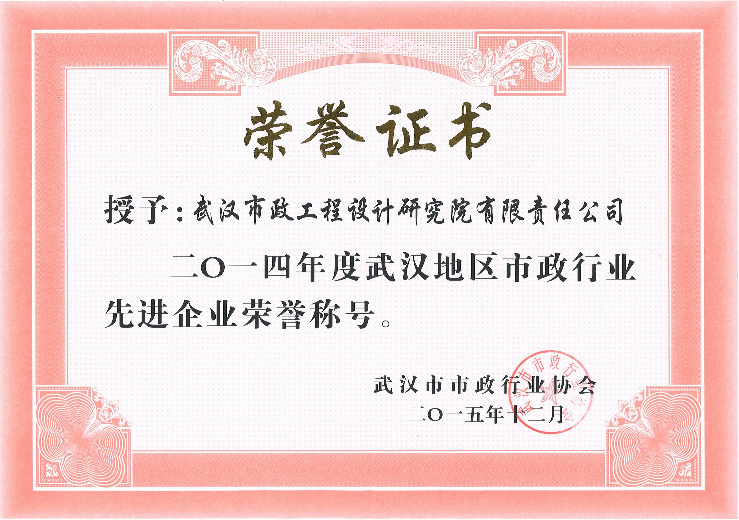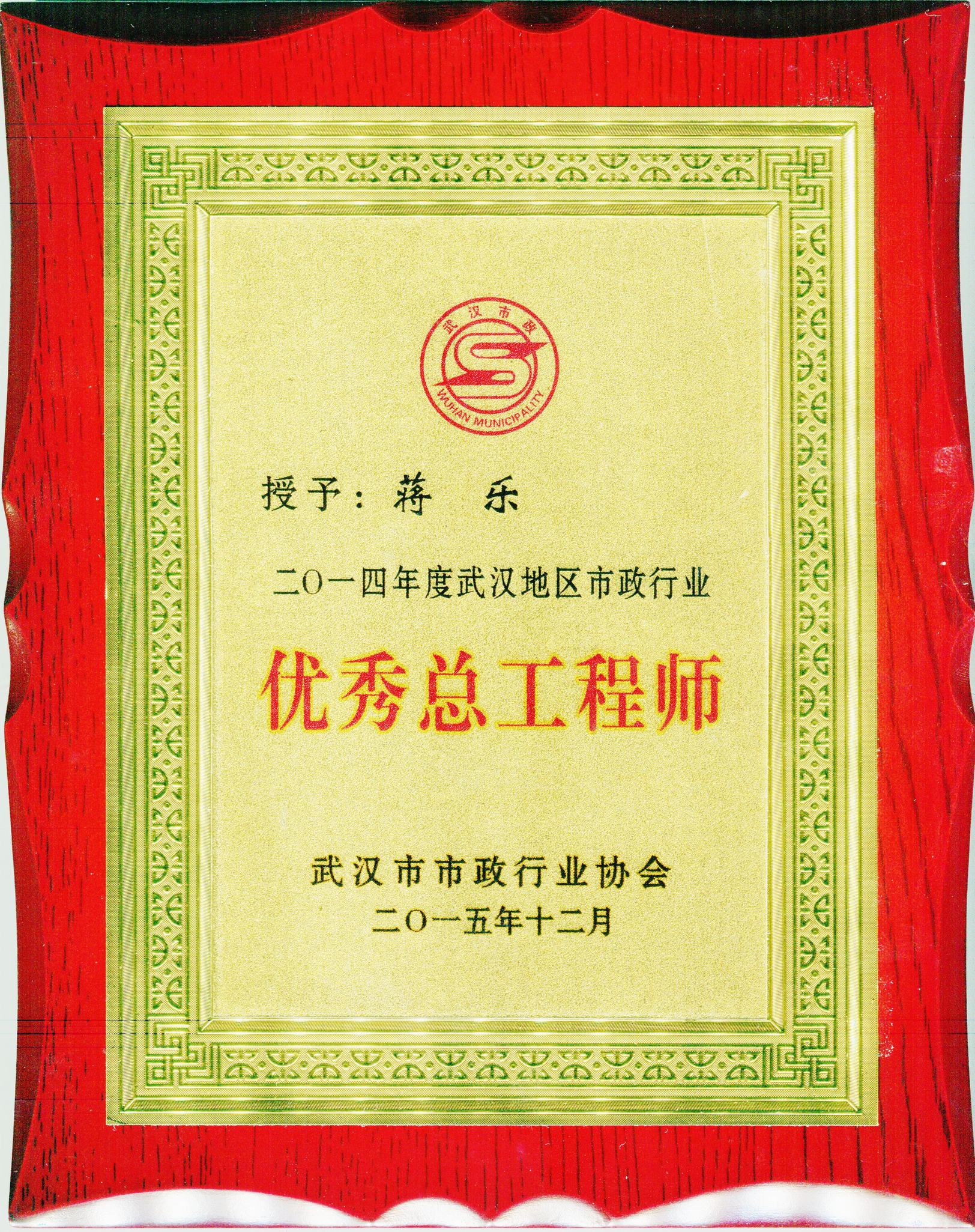 ??? 在2014年度的武漢市市政行業(yè)協(xié)會(huì)榮譽(yù)評(píng)選中,公司榮獲了“武漢地區(qū)市政行業(yè)先進(jìn)企業(yè)”、“AAA信譽(yù)企業(yè)”等榮譽(yù)稱號(hào);總經(jīng)理姚華同志榮獲“優(yōu)秀經(jīng)營(yíng)者”稱號(hào);副總經(jīng)理、總工程師蔣樂榮獲“優(yōu)秀總工程師”稱號(hào);萬(wàn)飛、盛建偉榮獲“優(yōu)秀監(jiān)理工程師”稱號(hào)。
