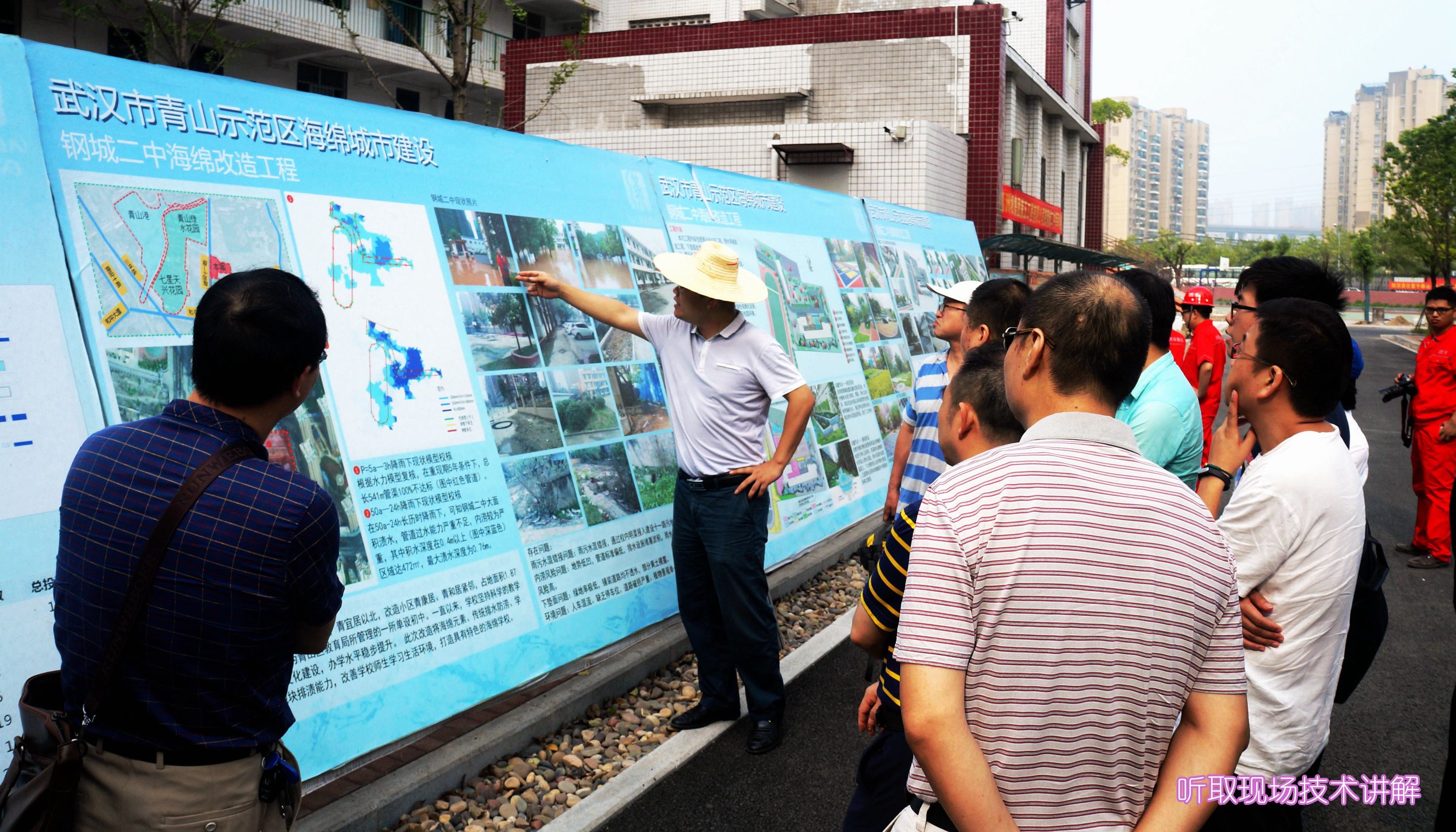 ??? 早上7點(diǎn)30分,參觀人員集中乘車,先后前往青山海綿城市建設(shè)示范區(qū)和四新海綿城市建設(shè)示范區(qū)進(jìn)行實(shí)地參觀考察,聽取了公司主要設(shè)計(jì)人員關(guān)于海綿城市設(shè)計(jì)理念的介紹和取得的實(shí)際效果,并邀請施工單位負(fù)責(zé)人講解了海綿城市項(xiàng)目在施工中運(yùn)用的技術(shù)和材料。參觀人員邊看邊聽邊記,詳細(xì)了解了海綿城市項(xiàng)目在設(shè)計(jì)、施工中的特點(diǎn)和需要注意的問題。