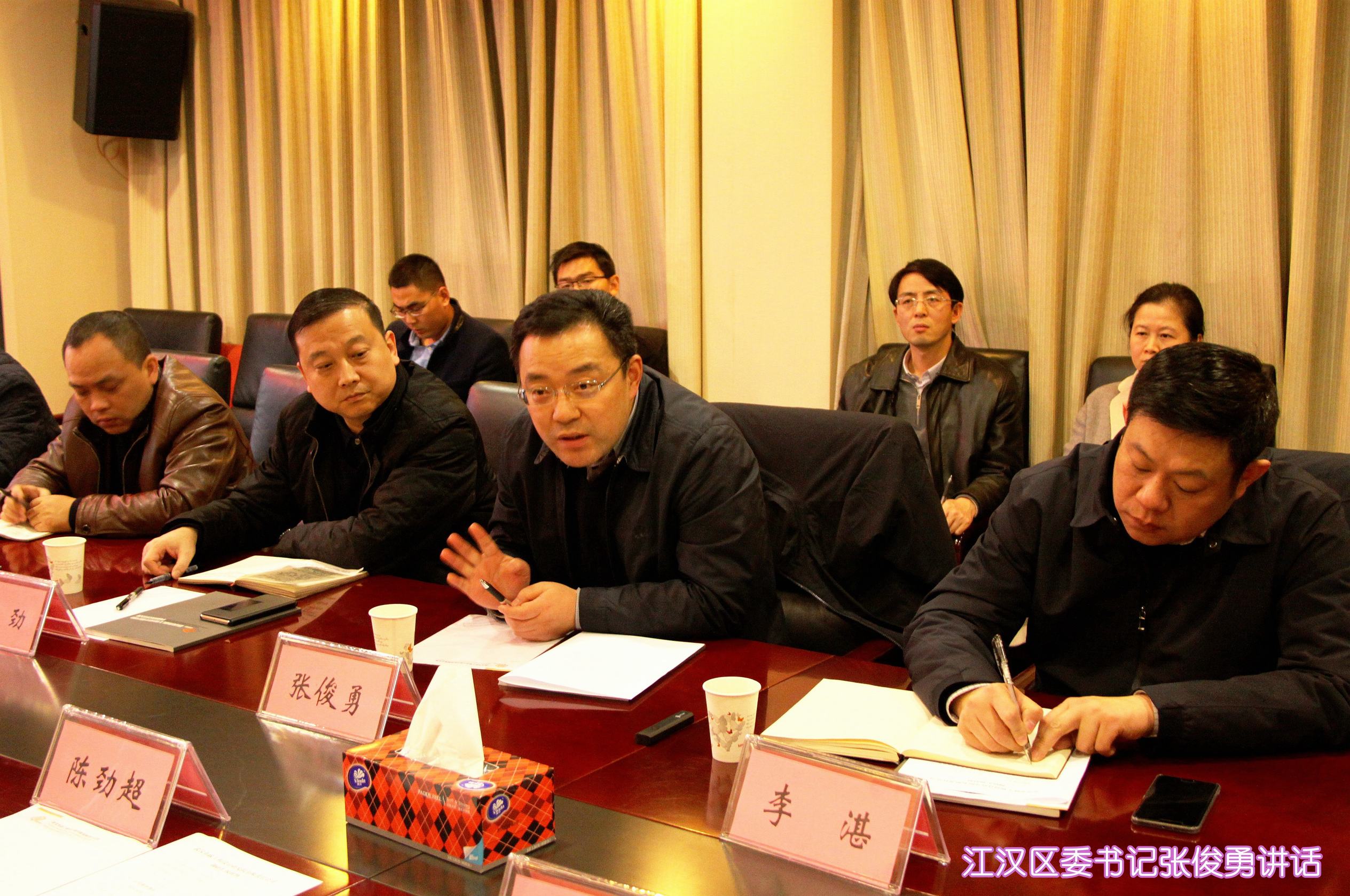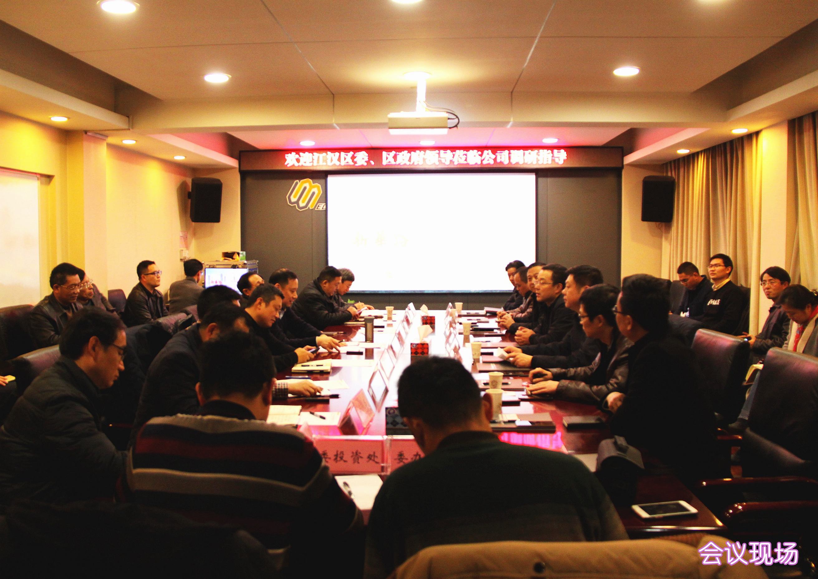 ??? 12月12日,江漢區(qū)區(qū)委書記張俊勇、區(qū)長李湛、常務副區(qū)長張勁、副區(qū)長葉勁松以及區(qū)建設局、江漢經濟開發(fā)區(qū)、三恒公司等領導蒞臨公司調研,市城建委主任陳勁超、副主任向暉、首席市政工程專家龍世平、相關處室領導和公司領導班子成員參加了座談。