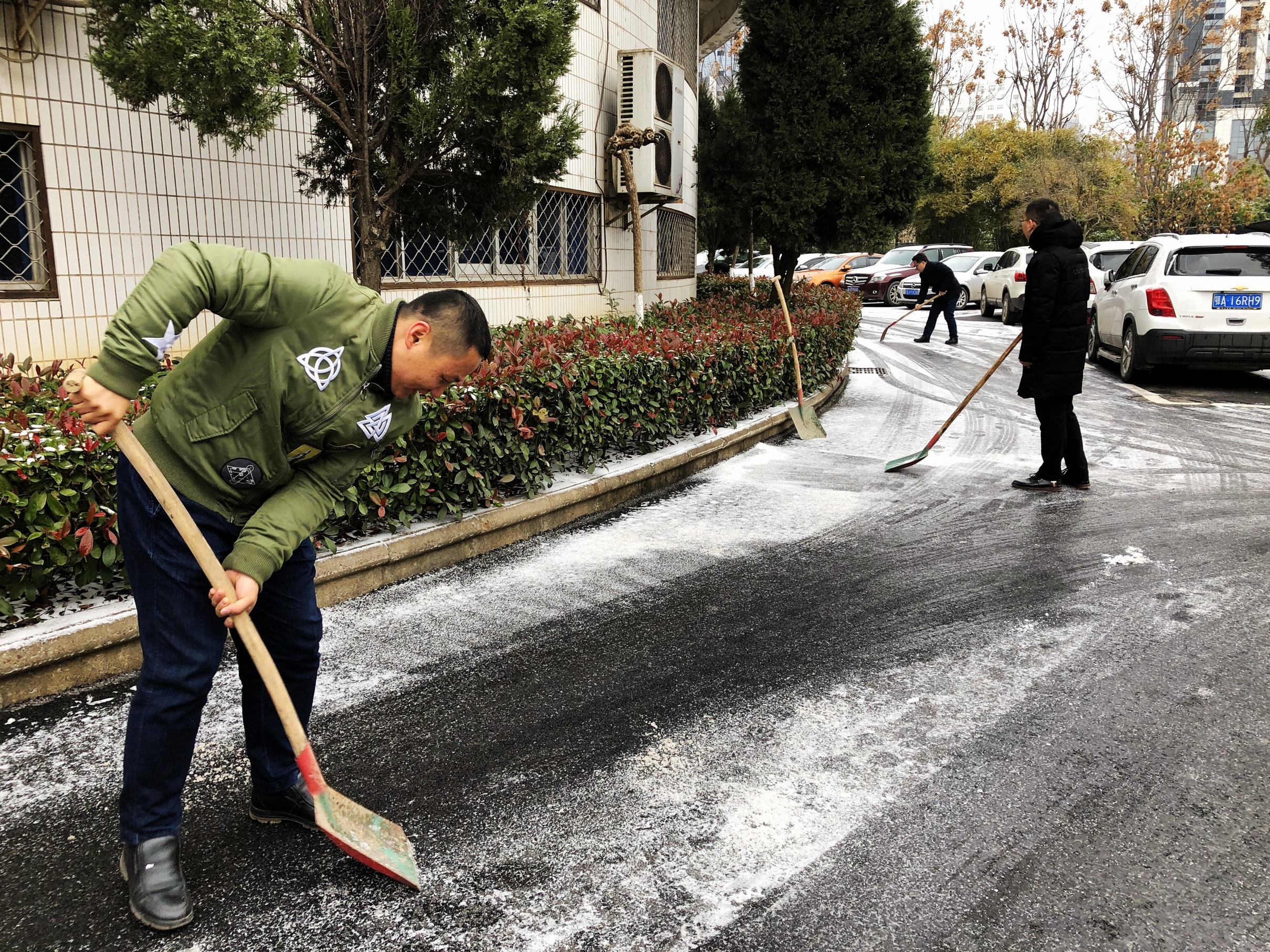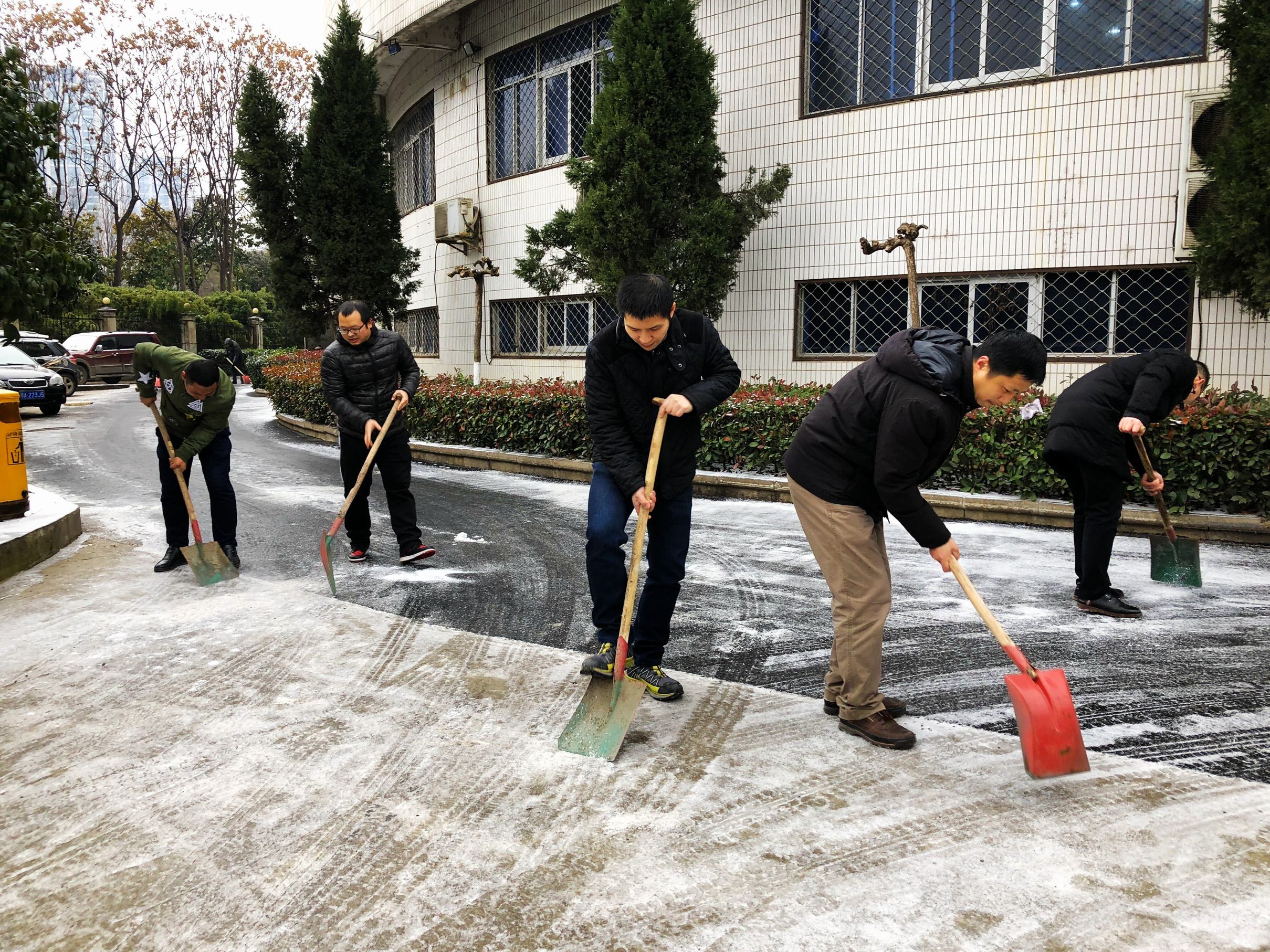 ??? 近日,武漢市迎來低溫雨雪天氣,公司內(nèi)部及周邊道路出現(xiàn)結(jié)冰情況,極易出現(xiàn)行人滑到和車輛打滑現(xiàn)象,存在極大安全隱患。
